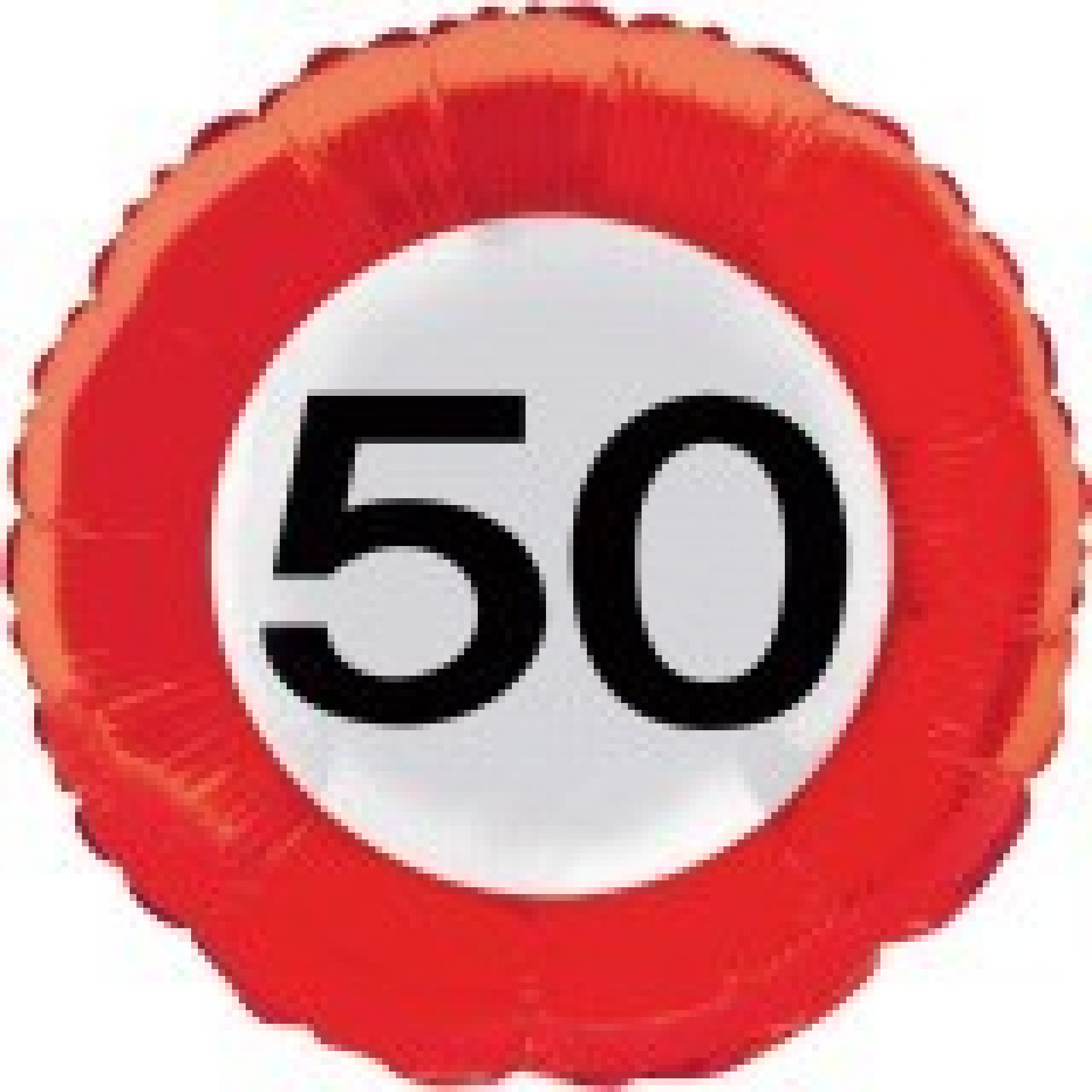 Verkeersbord 50 ballon. Leuke versiering voor een 50 jaar feest. De ballon heeft de vorm van een verkeersbord met het cijfer 50.