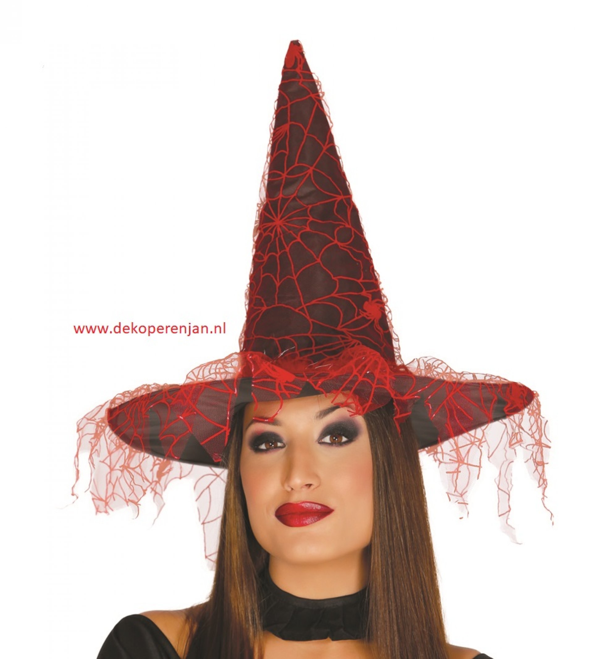 Heksen muts met rode spinnenweb