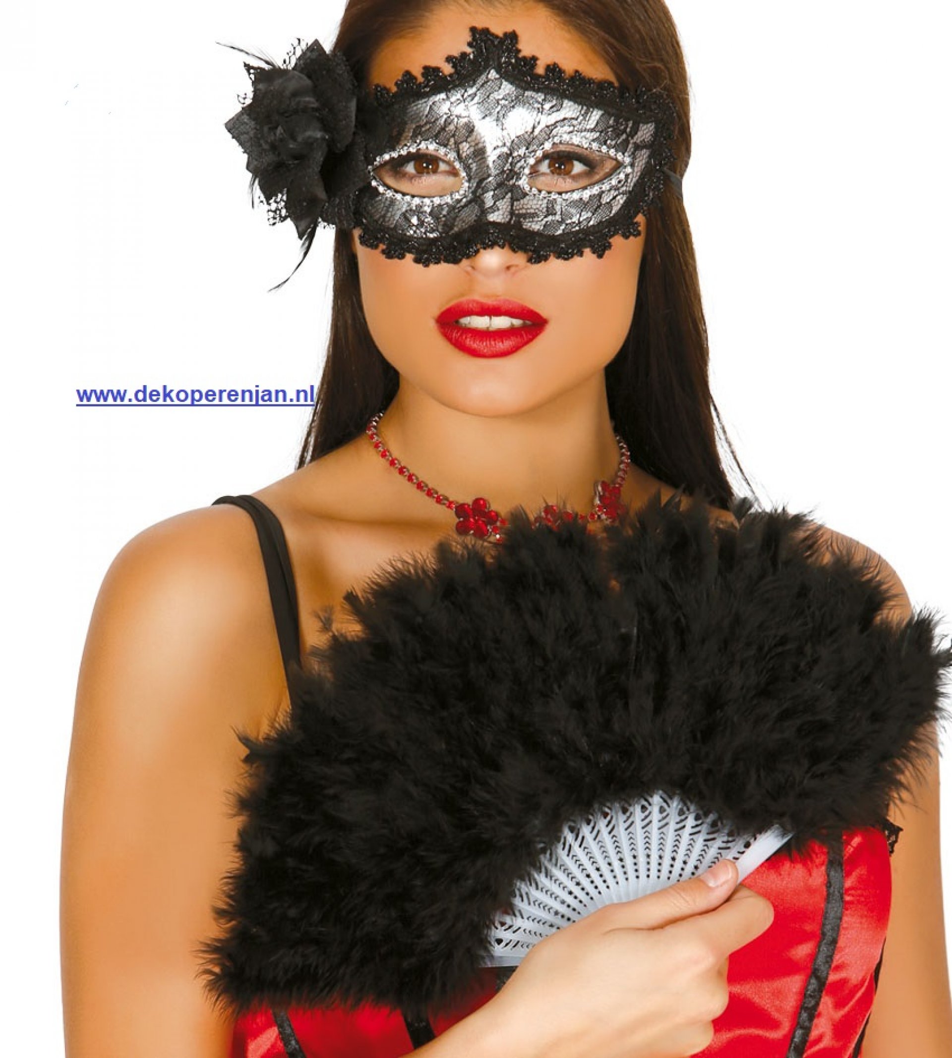 Waaier Zwart met veren